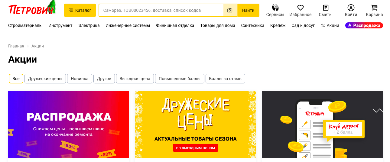 Спецпредложения действуют как онлайн в интернет-магазине Petrovich, так и в точках самовывоза. Благодаря этому клиентам проще получать нужные товары, а дополнительные баллы по программе лояльности и эксклюзивные промокоды помогают экономить на покупках.